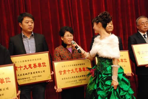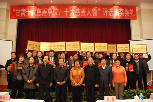 由甘肅省慈善總會和甘肅日報社聯(lián)合主辦、每日甘肅網(wǎng)獨(dú)家承辦的2010年甘肅省十大“慈善單位”、“慈善人物”頒獎典禮于2010年12月28日在蘭州舉行。經(jīng)過激烈角逐,甘肅國芳工貿(mào)集團(tuán)股份有限公司榮幸地被評為“甘肅十大慈善單位”之一。