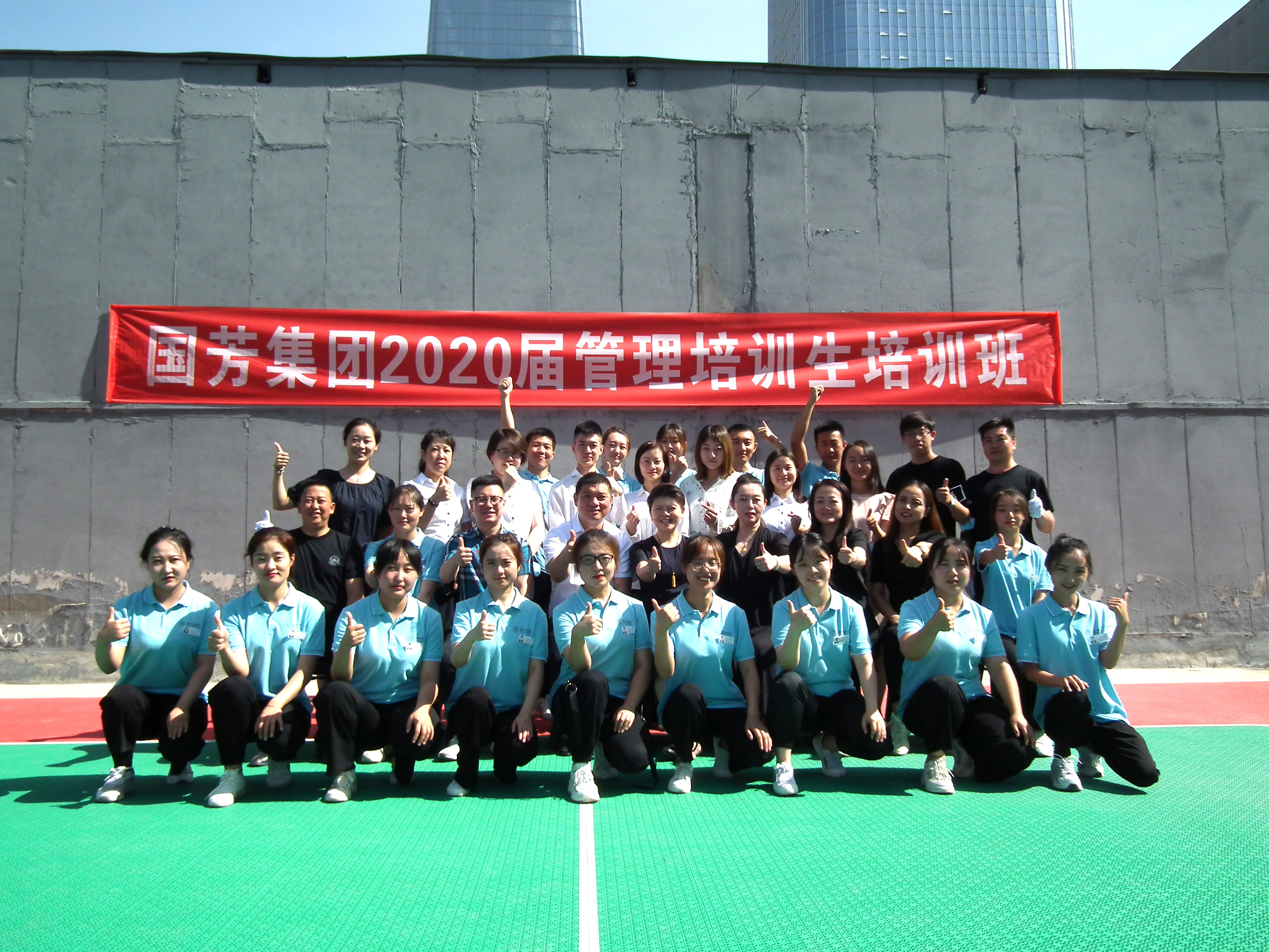 “太陽(yáng)已從那天邊升起,我們相約在這里迎接······”8月10日上午9:30分,國(guó)芳集團(tuán)2020屆管理培訓(xùn)生軍事匯報(bào)表演伴隨著公司企業(yè)之歌——《榮耀未來(lái)》的歌聲正式拉開帷幕。本次軍訓(xùn)為期一周,旨在增強(qiáng)團(tuán)隊(duì)內(nèi)部凝聚力與執(zhí)行力,提升自律意識(shí),塑造積極向上的精神風(fēng)貌。